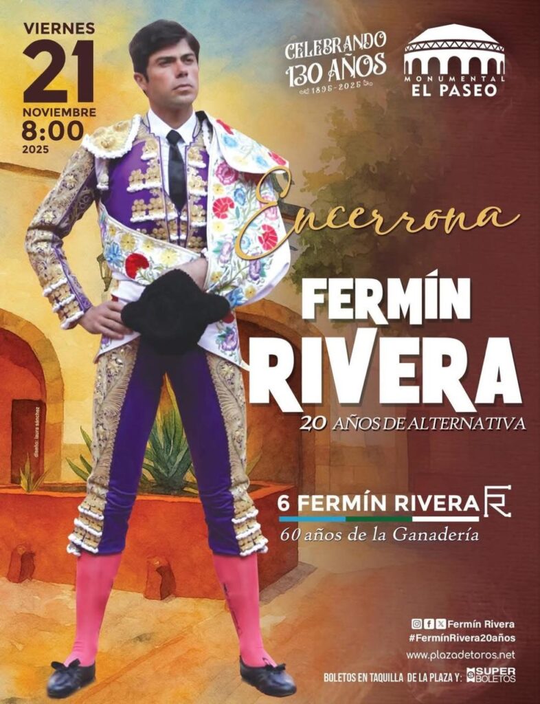 El matador potosino Fermín Rivera Agüero, heredero de una reconocida dinastía taurina, está próximo a cumplir 20 años de haber tomado la alternativa en la Monumental Plaza México, un aniversario que coincide con una carrera sólida, respetada y en constante evolución dentro de los ruedos. De carácter reservado, fino y sencillo, el torero compartió un repaso por su trayectoria, sus raíces y las metas que aún desea alcanzar.