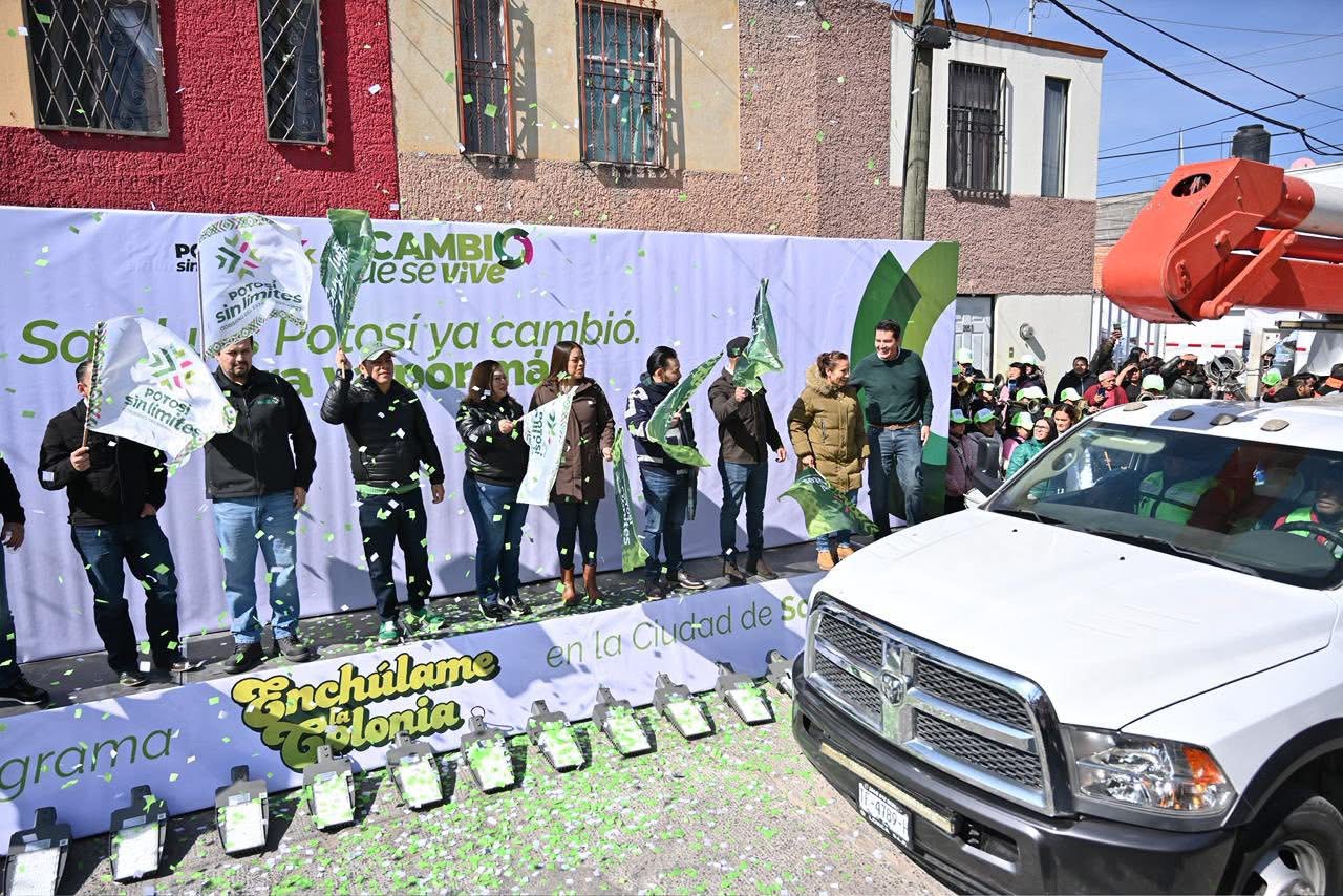 El Gobernador de San Luis Potosí Ricardo Gallardo Cardona, dio el banderazo de arranque al nuevo programa “Enchúlame la Colonia”, con el que modernizará 200 colonias de la zona metropolitana durante 2026, con la participación de diversas cuadrillas de trabajo para intervenir vialidades con acciones de bacheo y pavimentación, renovar luminarias, rehabilitar áreas verdes, instalar juegos y aparatos de ejercicio, entre otras, con una inversión histórica de 600 millones de pesos.
