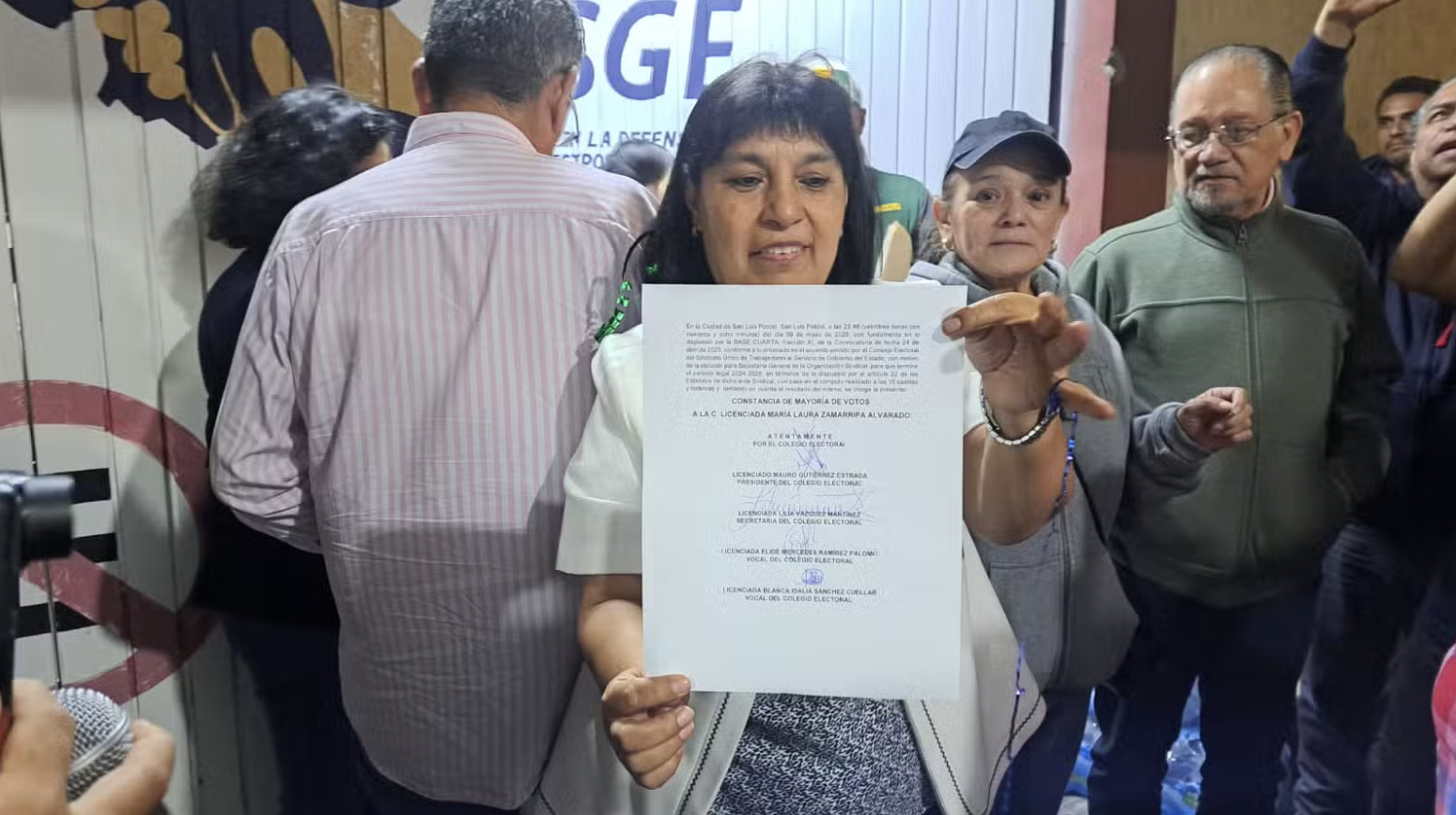 María Laura Zamarripa Alvarado fue electa como nueva secretaria general del Sindicato Único de Trabajadores al Servicio del Gobierno del Estado (SUTSGE) para el periodo 2024–2028, tras obtener dos mil 170 votos en la jornada electoral interna celebrada este viernes 9 de mayo. Su contendiente, Lilia Pérez Pérez, recibió 947 sufragios.
