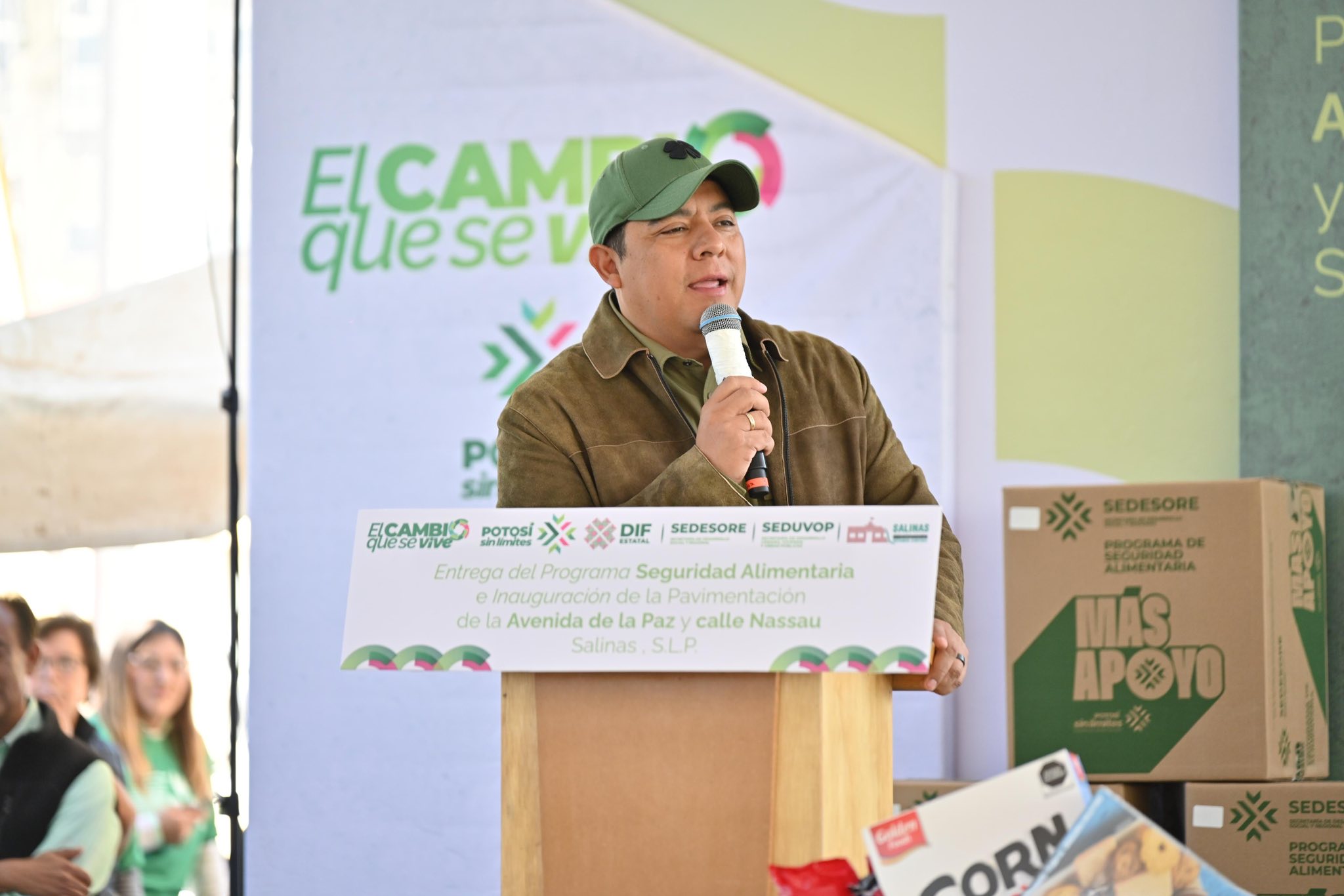 En la cabecera municipal, el mandatario estatal entregó el programa de Seguridad Alimentaria a familias beneficiarias, además de inaugurar la pavimentación de la avenida de La Paz y de la calle Nasau, obras que buscan mejorar la movilidad y la infraestructura urbana.