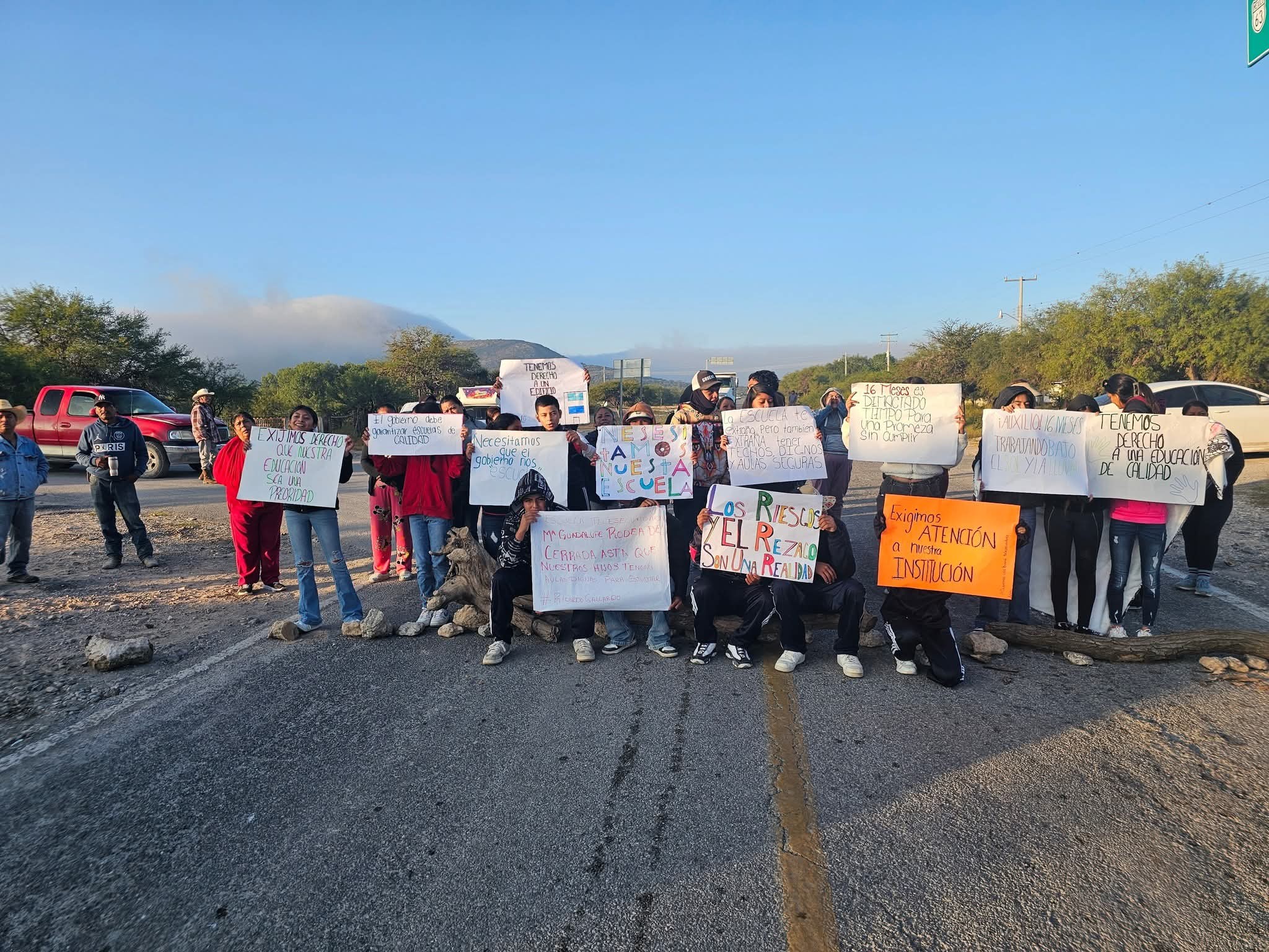 Desde las 7 de la mañana de este viernes 17 de octubre, habitantes de la comunidad de Zaragoza de Solís, en Villa de Guadalupe, decidieron bloquear la carretera Charcas-Matehuala, como medida de presión para ser escuchados por las autoridades gubernamentales. Los manifestantes señalaron que desde hace 16 meses han solicitado, sin éxito, la reparación de los techos de la telesecundaria María Guadalupe Rodea de Jongitud, los cuales presentan daños que impiden el uso de las aulas.