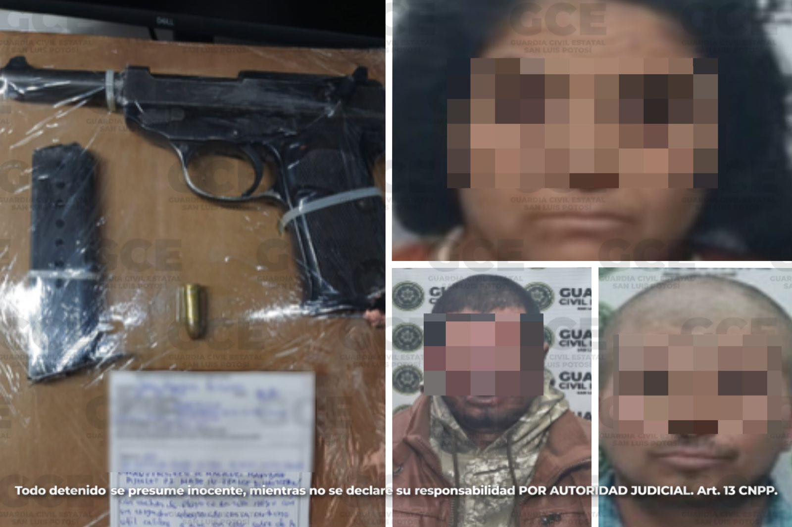 Tras la intervención, las tres personas fueron trasladadas y puestas a disposición de la autoridad competente, junto con el arma asegurada, a fin de que se realicen las investigaciones correspondientes y se determine su situación jurídica conforme a derecho.