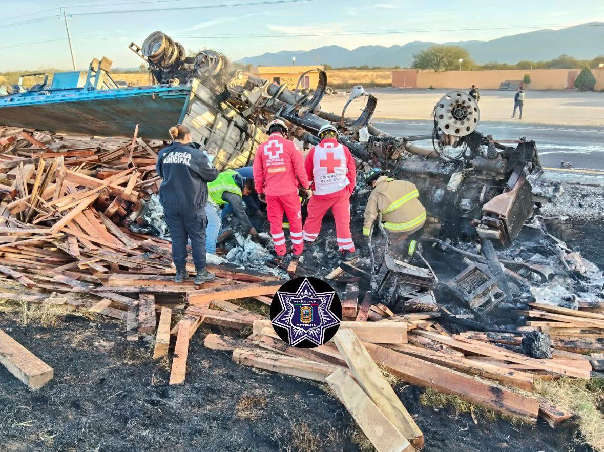 La mañana de este jueves 11 de noviembre se registró un grave accidente en el kilómetro 172 de la carretera 57, donde un tráiler terminó incendiado tras un fuerte percance. De acuerdo con los primeros reportes, la unidad de carga circulaba sobre la vía cuando, por causas aún no determinadas, perdió el control y se impactó, lo que provocó que inmediatamente comenzara a arder.