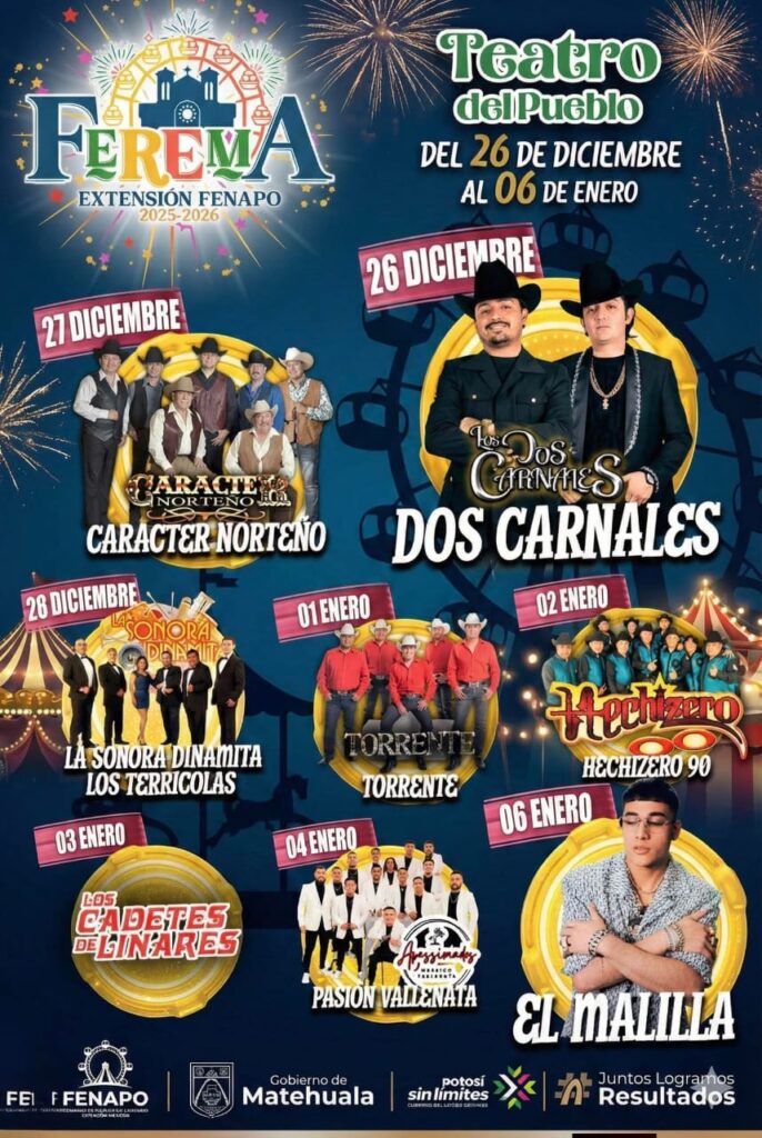 Además de los conciertos, la FEREMA contará con diversas actividades deportivas y recreativas, reforzando su carácter familiar y comunitario. Autoridades destacaron que este evento es posible gracias al trabajo y respaldo del gobernador Ricardo Gallardo Cardona, quien ha impulsado ferias gratuitas y de calidad como parte de su estrategia para promover la convivencia social, el turismo y la reactivación económica en el estado.