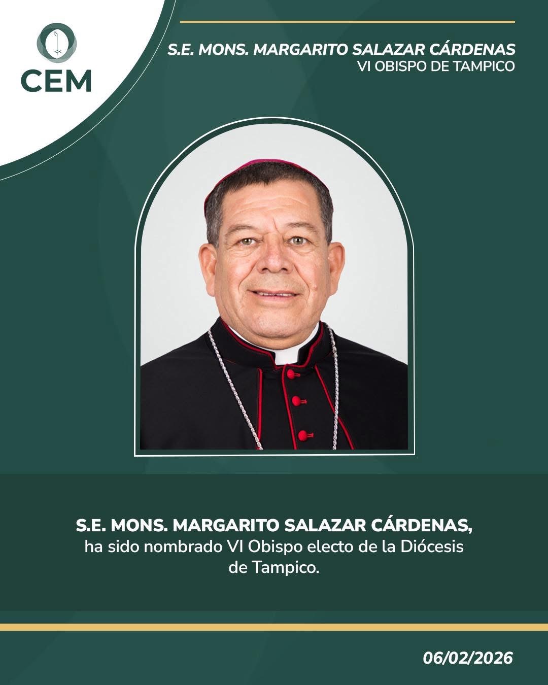El Papa León XIV nombró a Mons. Margarito Salazar Cárdenas como nuevo Obispo de la Diócesis de Tampico, con lo que concluye el periodo de sede vacante que se mantenía desde marzo de 2025. El anuncio fue dado a conocer este jueves por la Nunciatura Apostólica en México a través de la Secretaría General de la Conferencia del Episcopado Mexicano.
