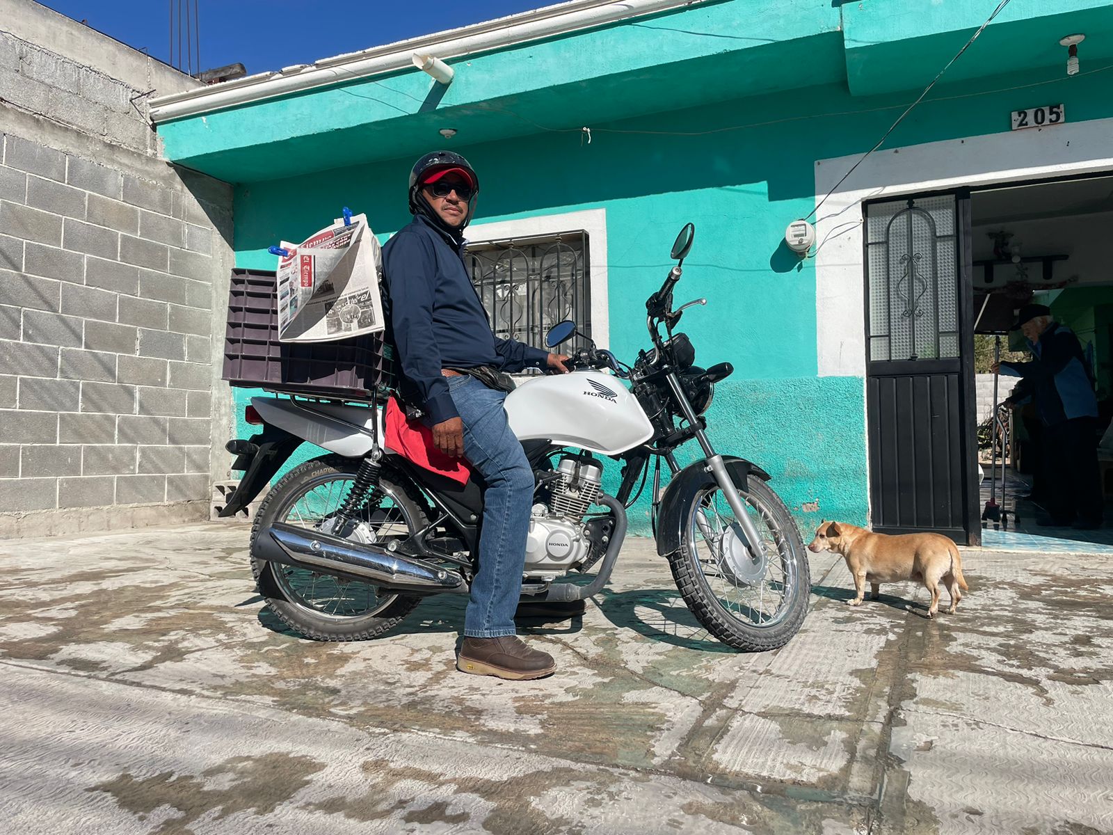 Con más de 20 años de experiencia, Don Memo ha sido testigo silencioso de la vida diaria del Altiplano. Durante sus trayectos en moto ha vivido de todo, mañanas de neblina y frío extremo, días de intenso calor, calles inundadas, encuentros con animales, personas que lo esperan puntualmente y otras que le comparten historias mientras reciben el diario.