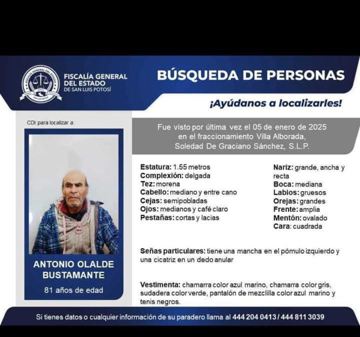 Gracias a los operativos de vigilancia y prevención que se realizan de manera permanente en el municipio, la madrugada de este sábado 18, personal de la Guardia Civil Municipal de Villa de Pozos localizó a una persona de la tercera edad que contaba con ficha de búsqueda en los estados de Nuevo León y San Luis Potosí.